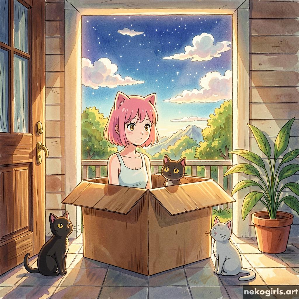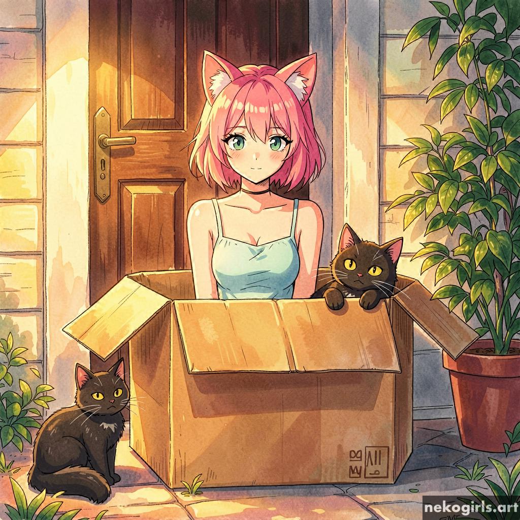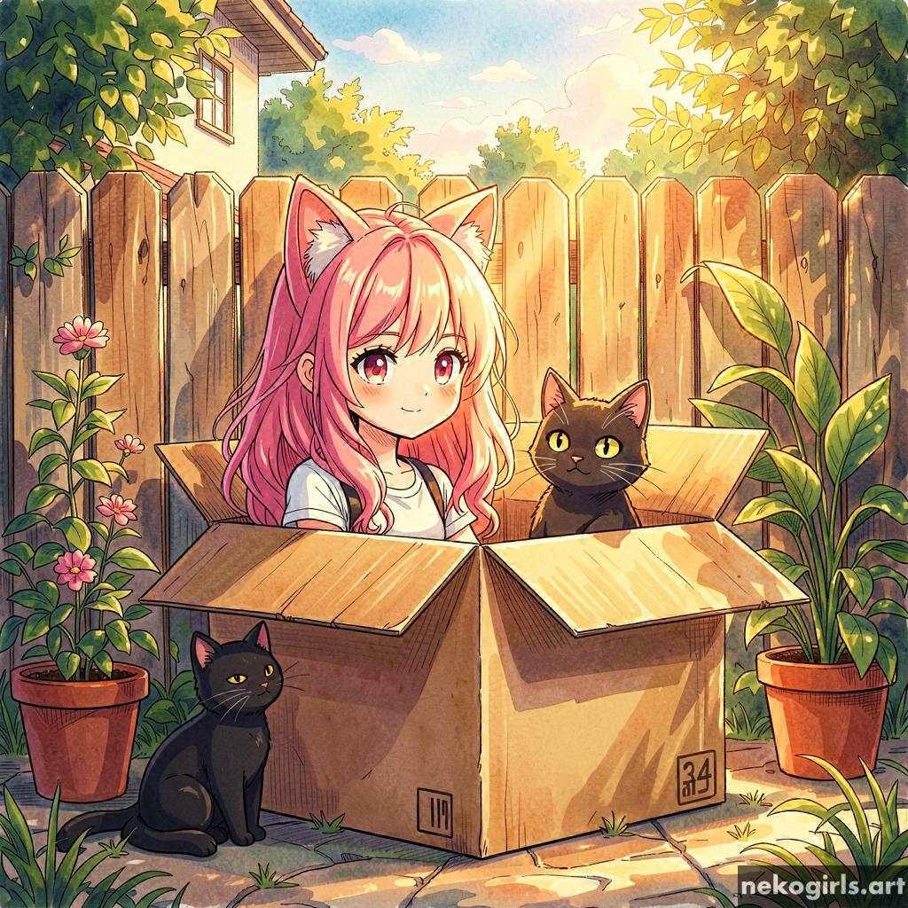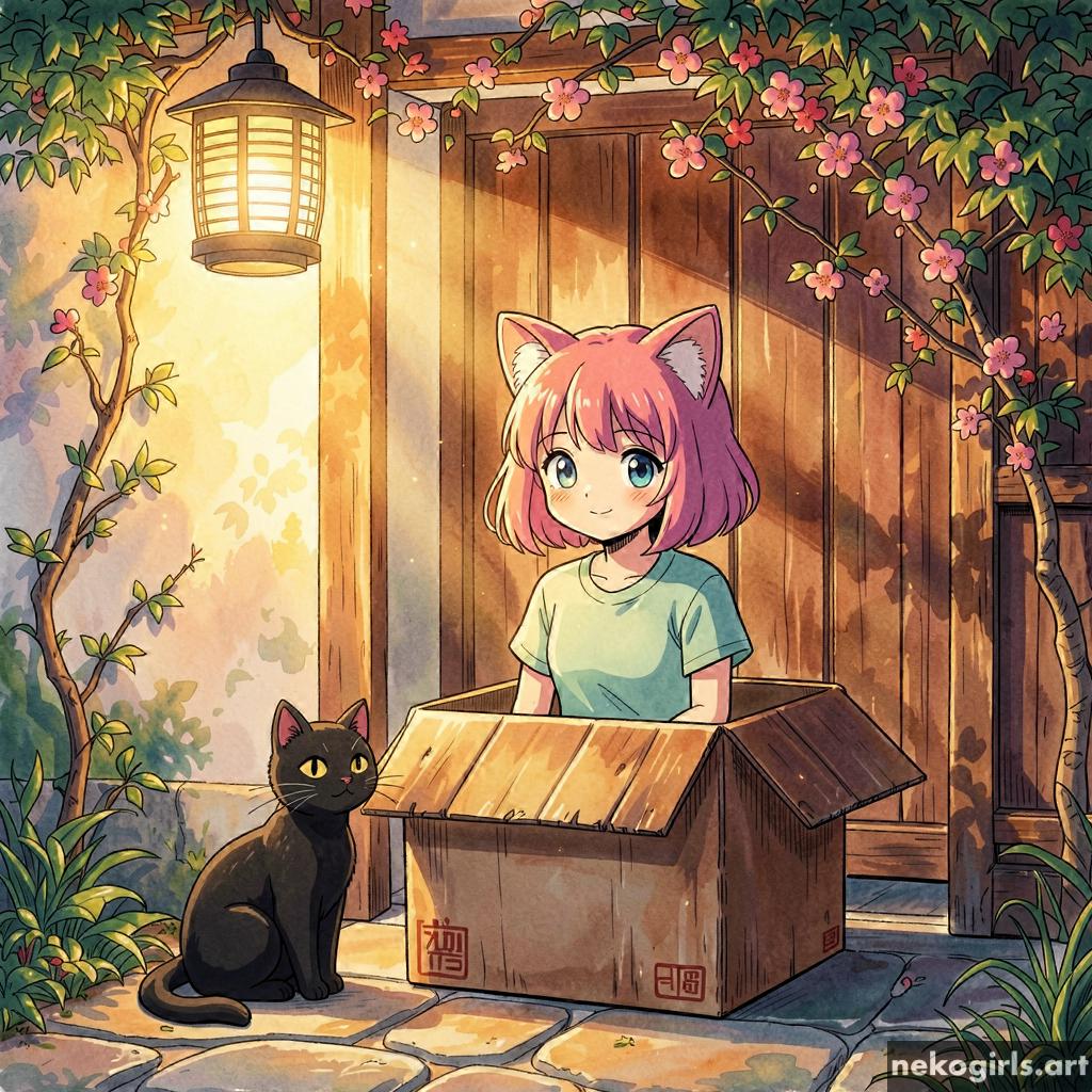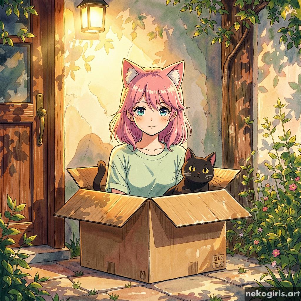 Cat girl in a cardbox.