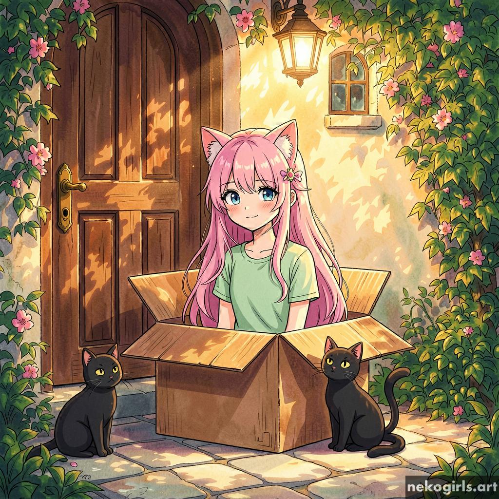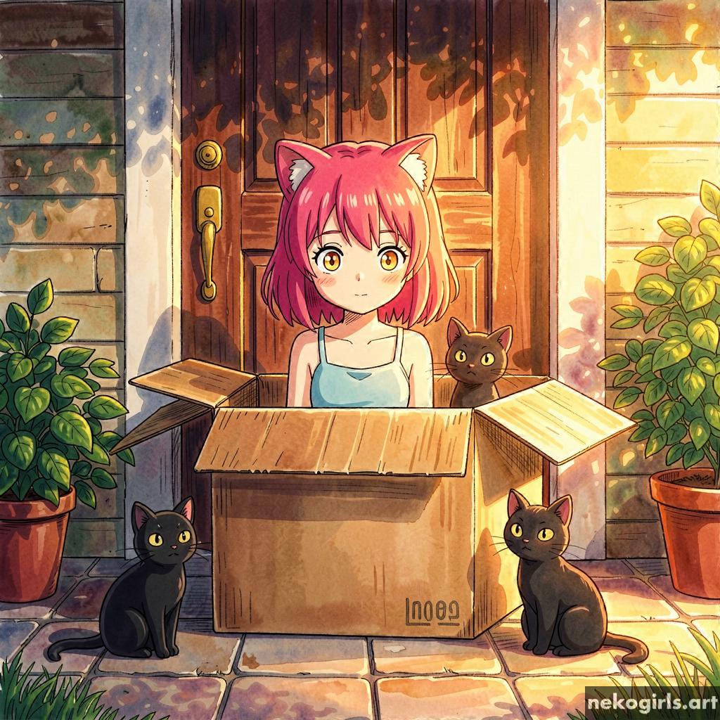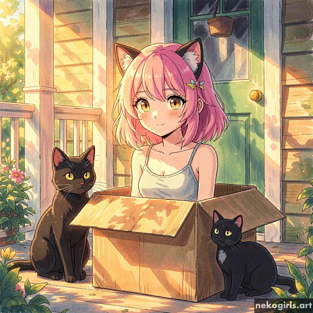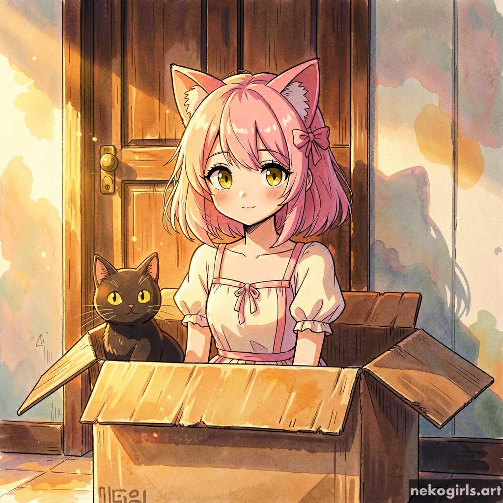 Cat girl in a cardbox.