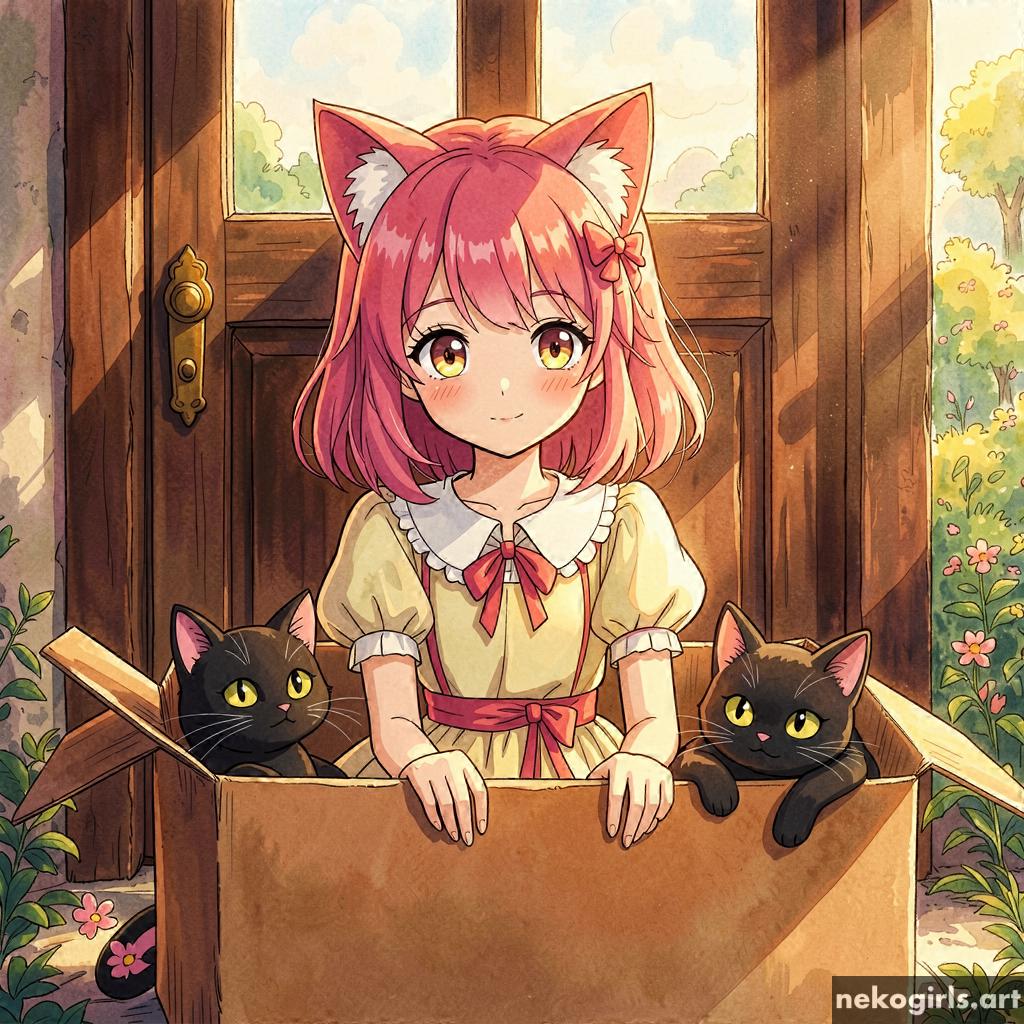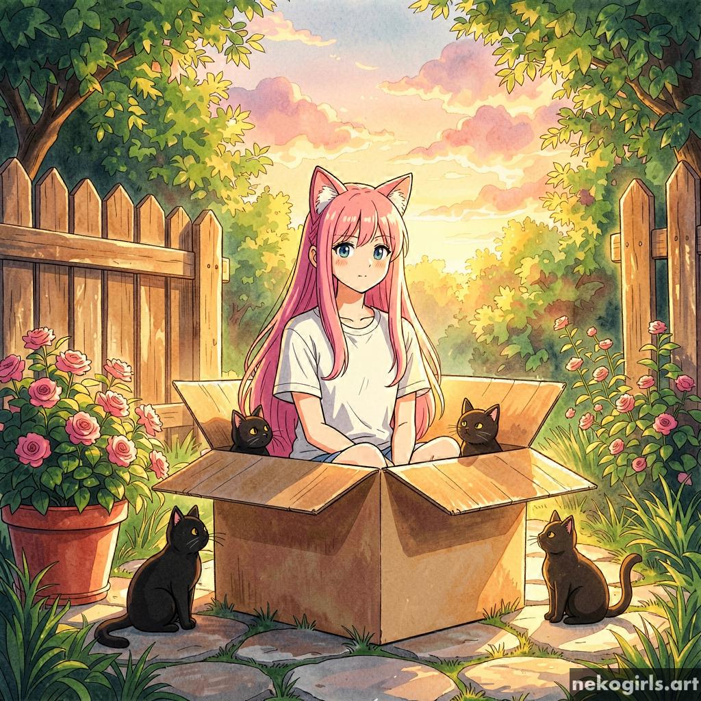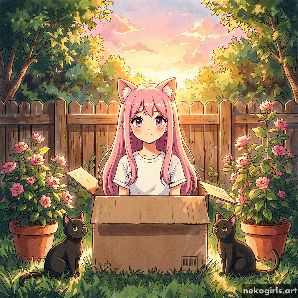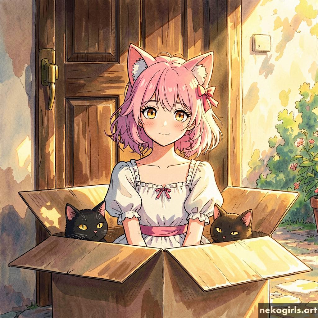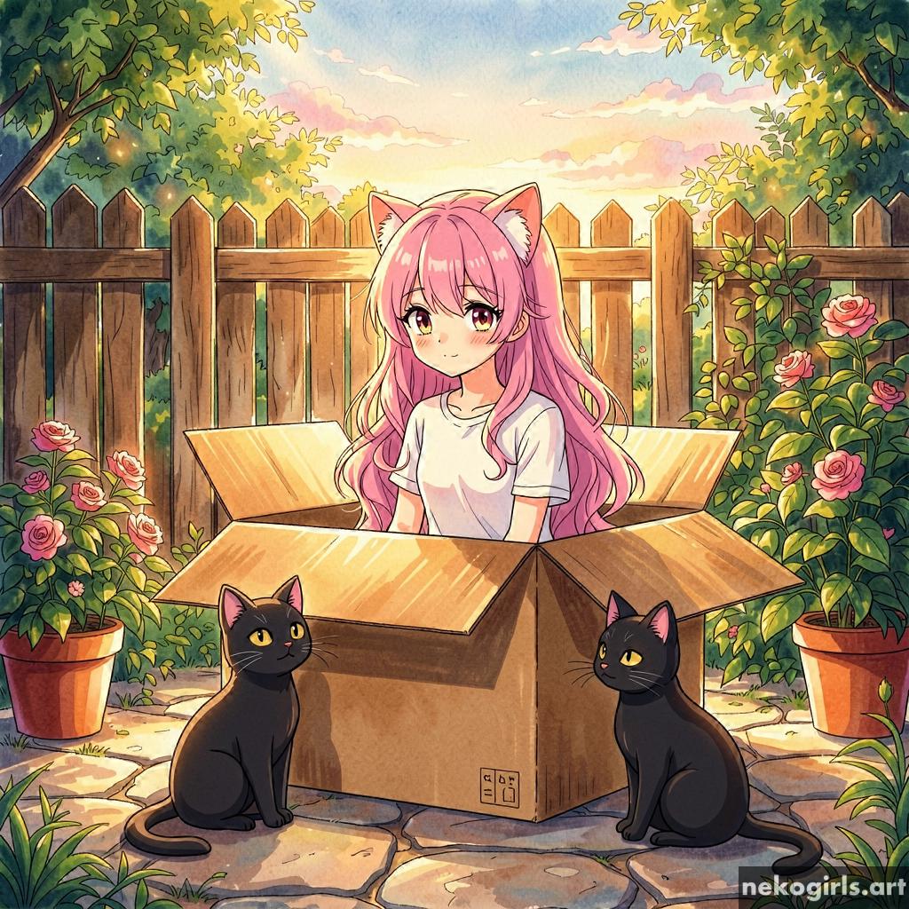 Cat girl in a cardbox.