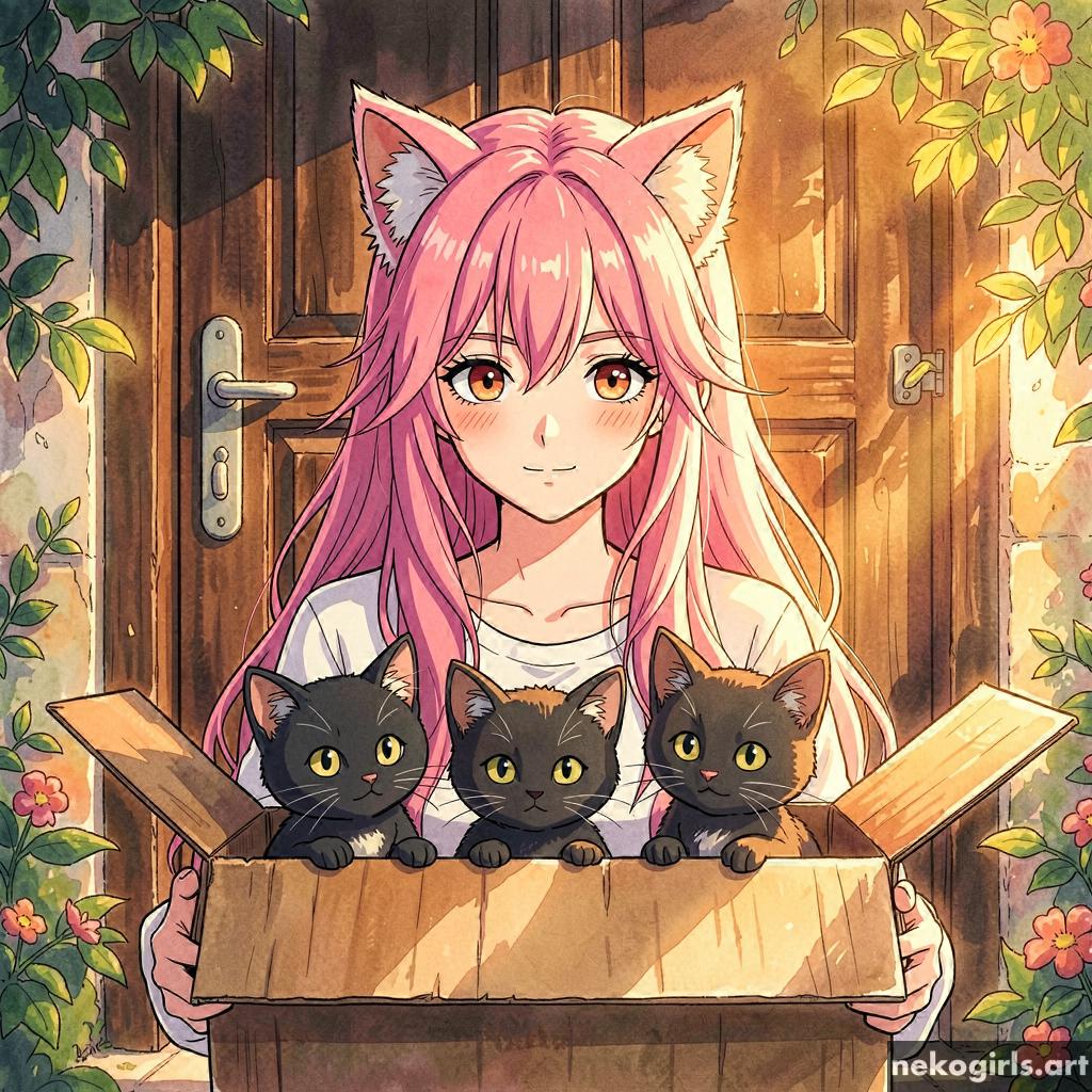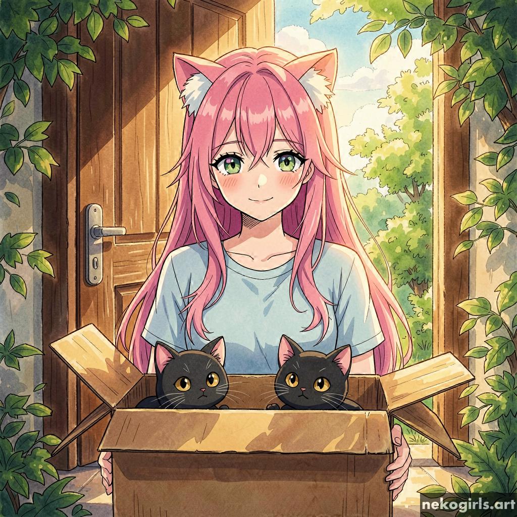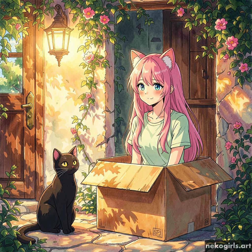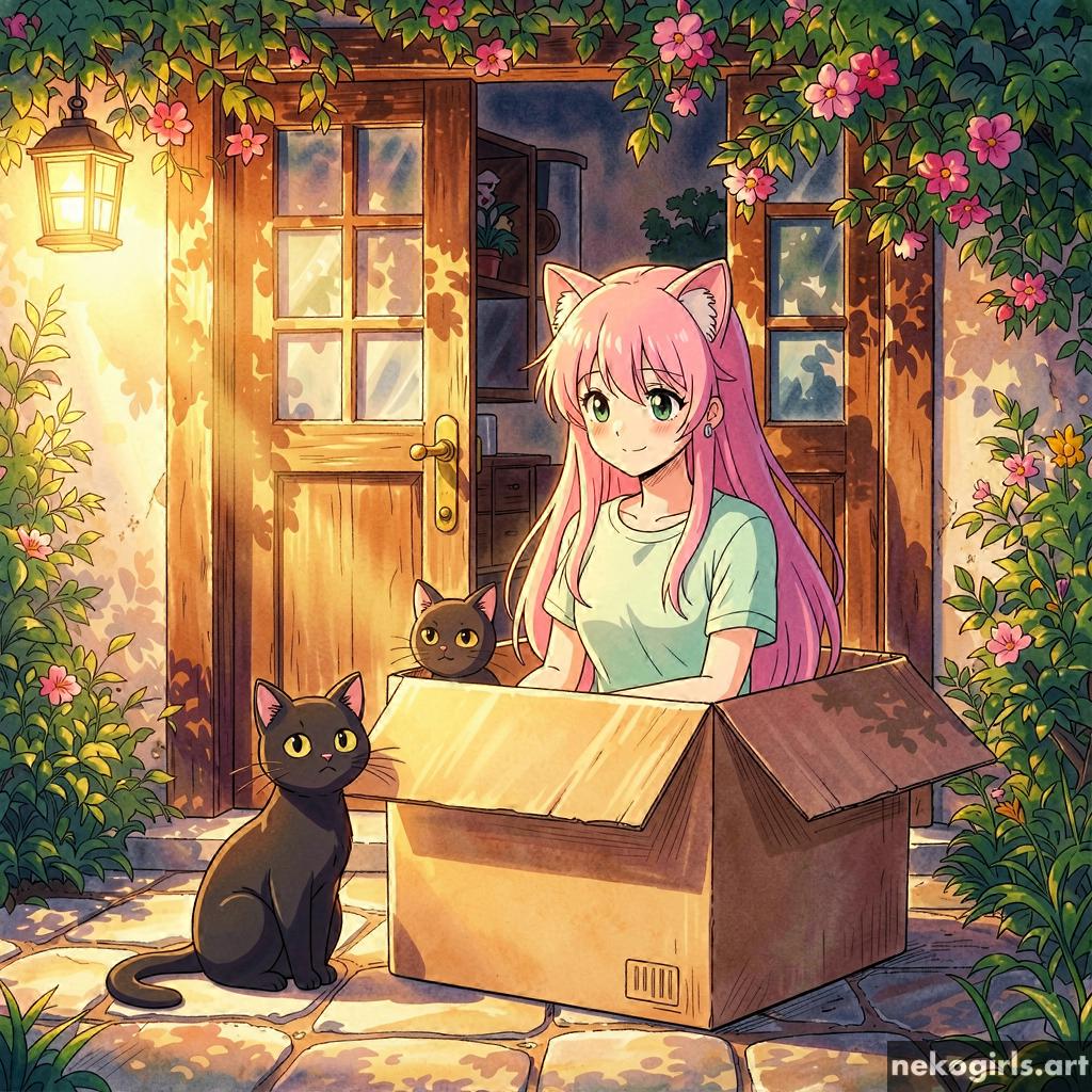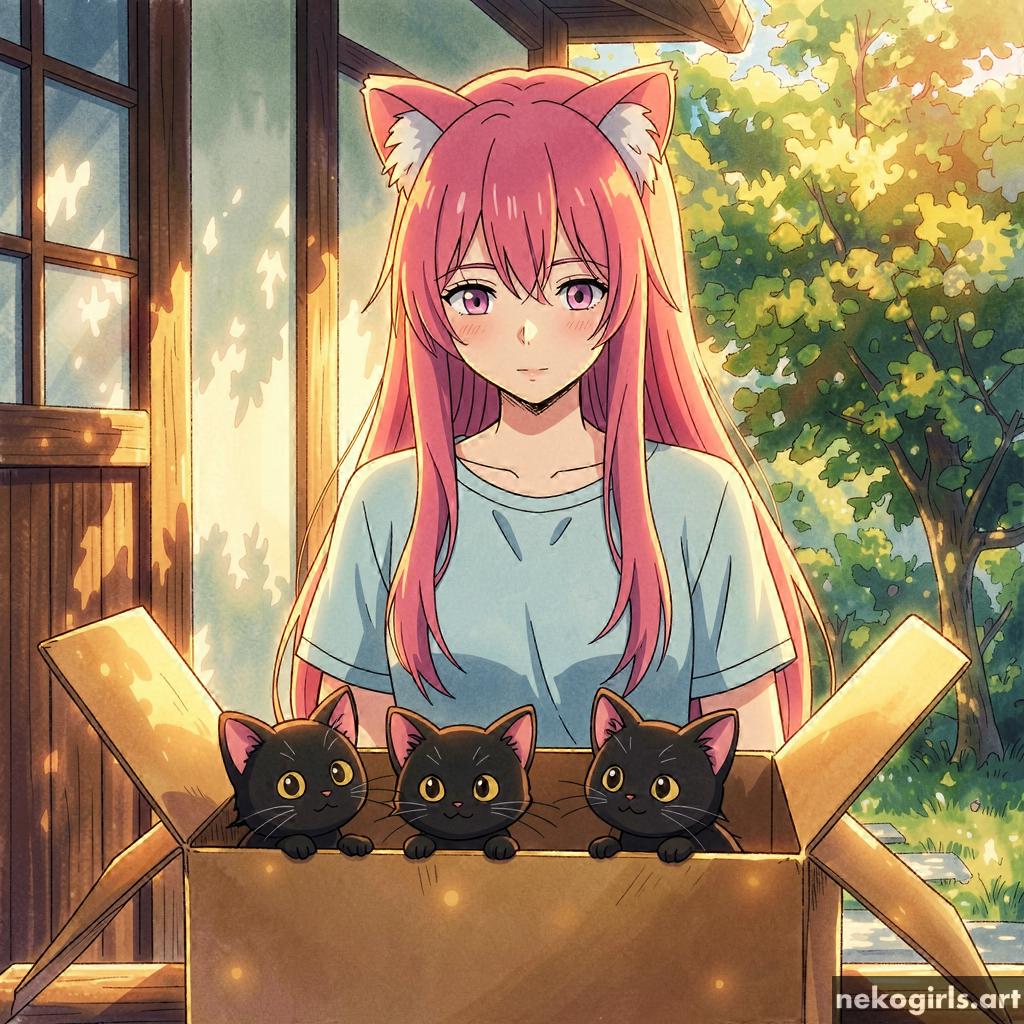 Cat girl in a cardbox.