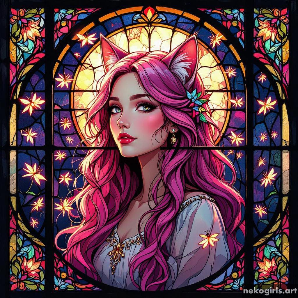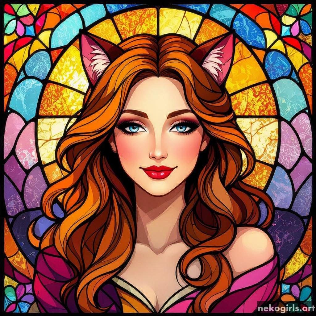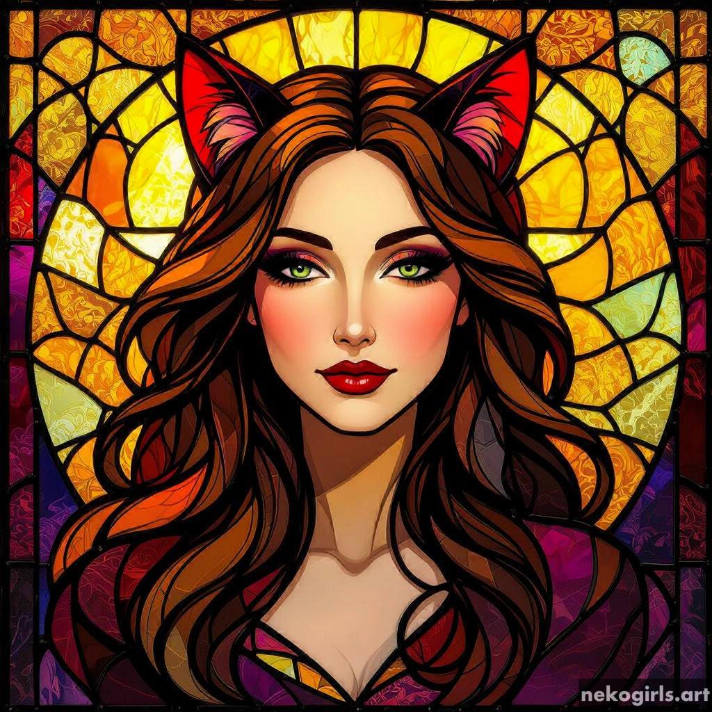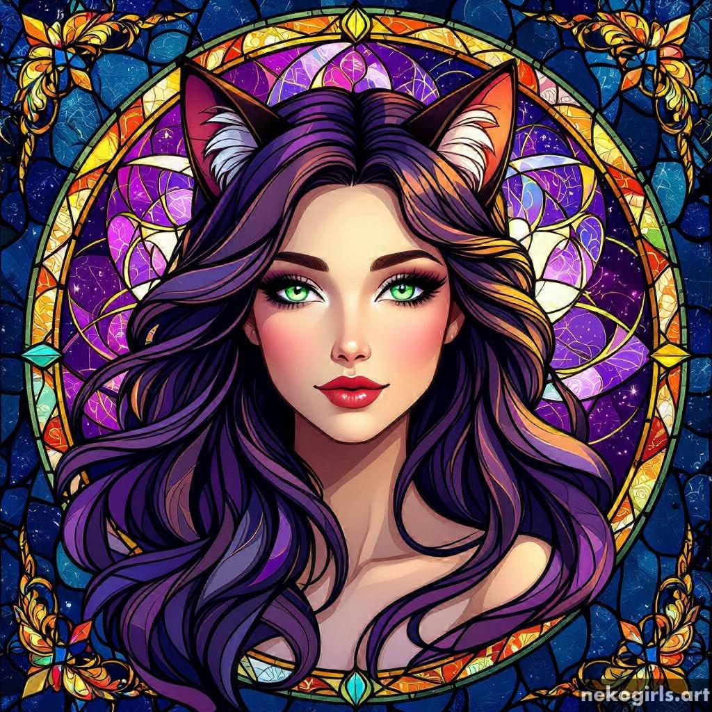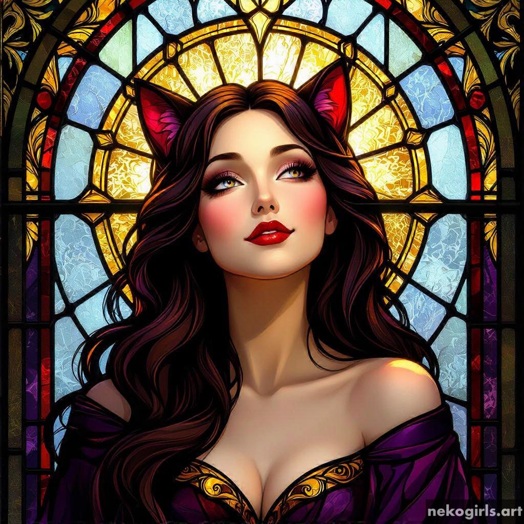 Stained glass cat girl