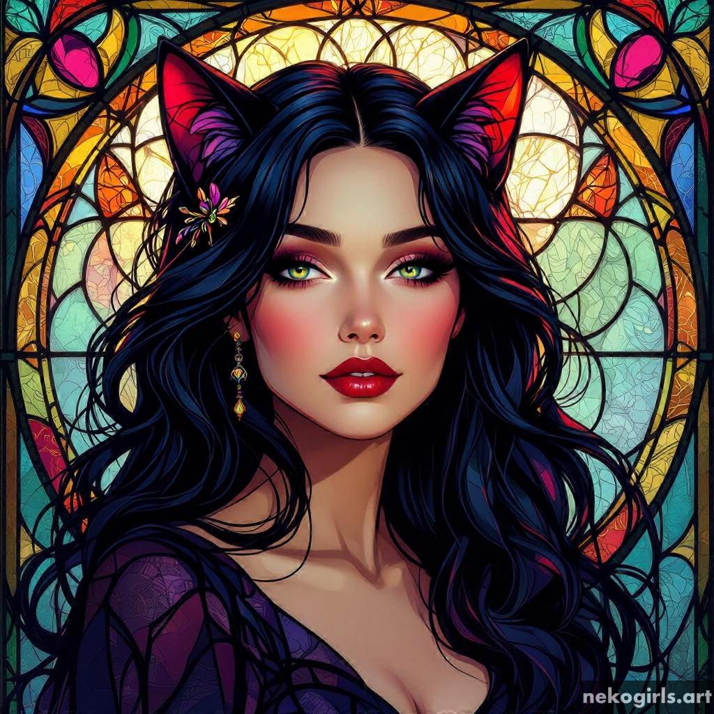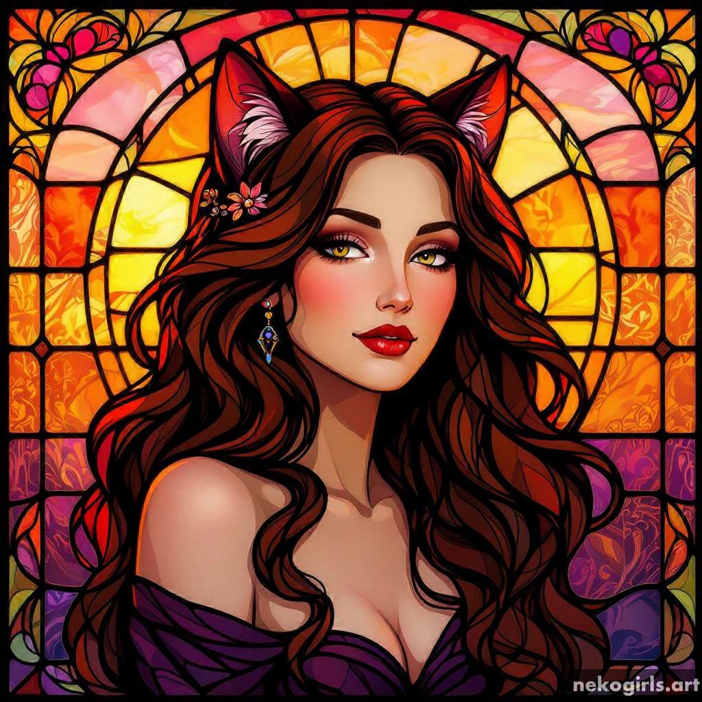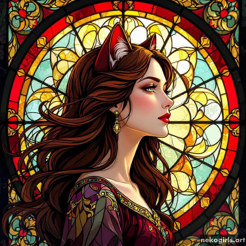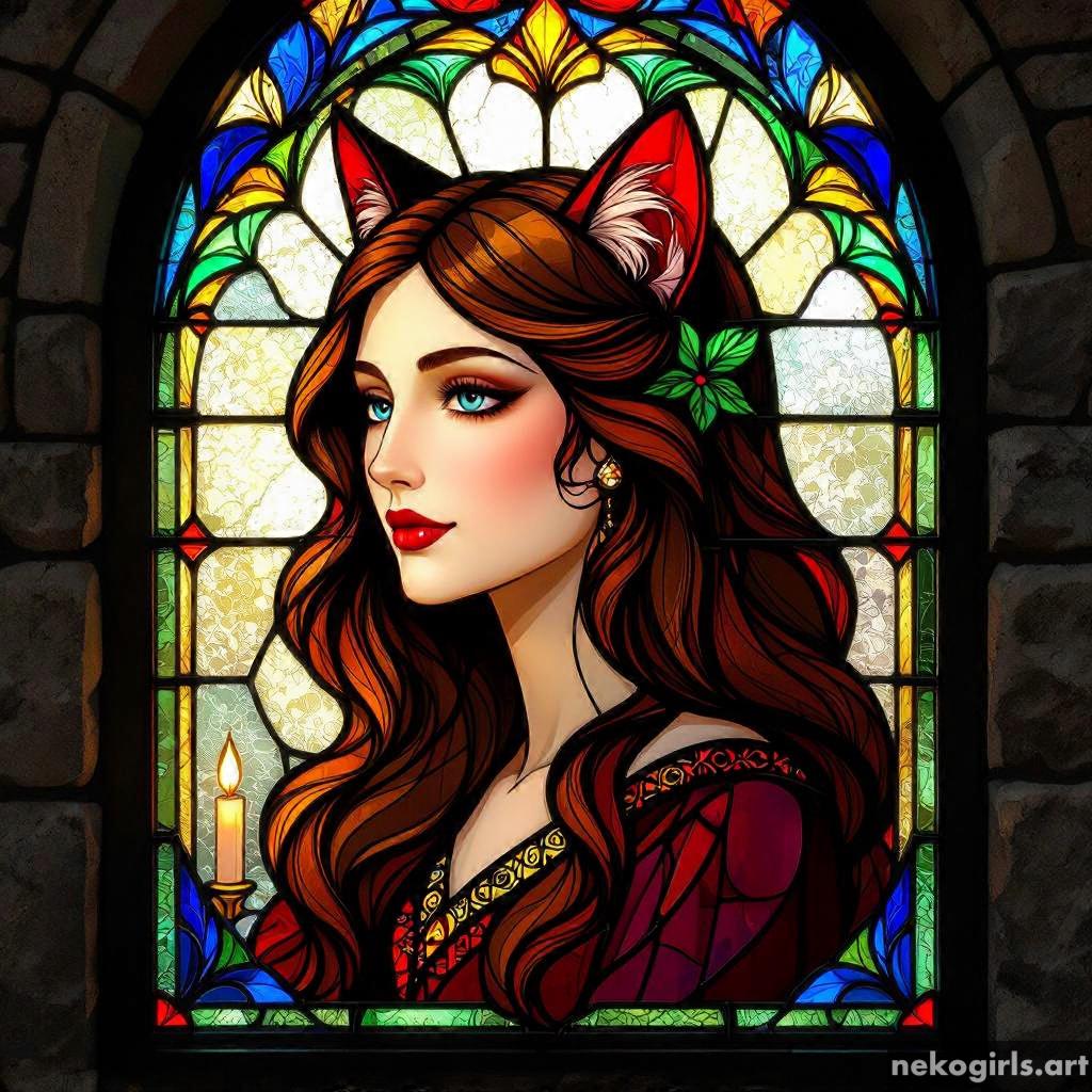 Stained glass cat girl