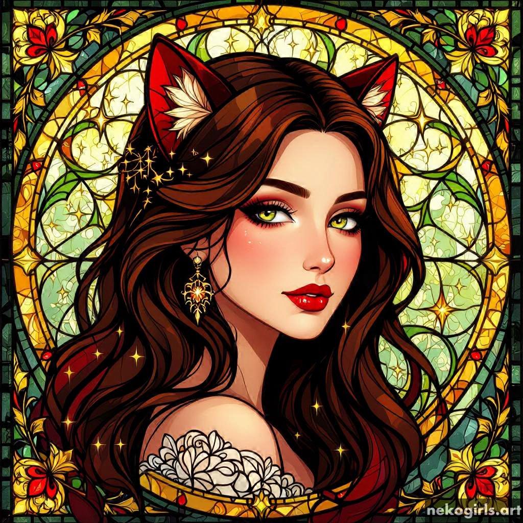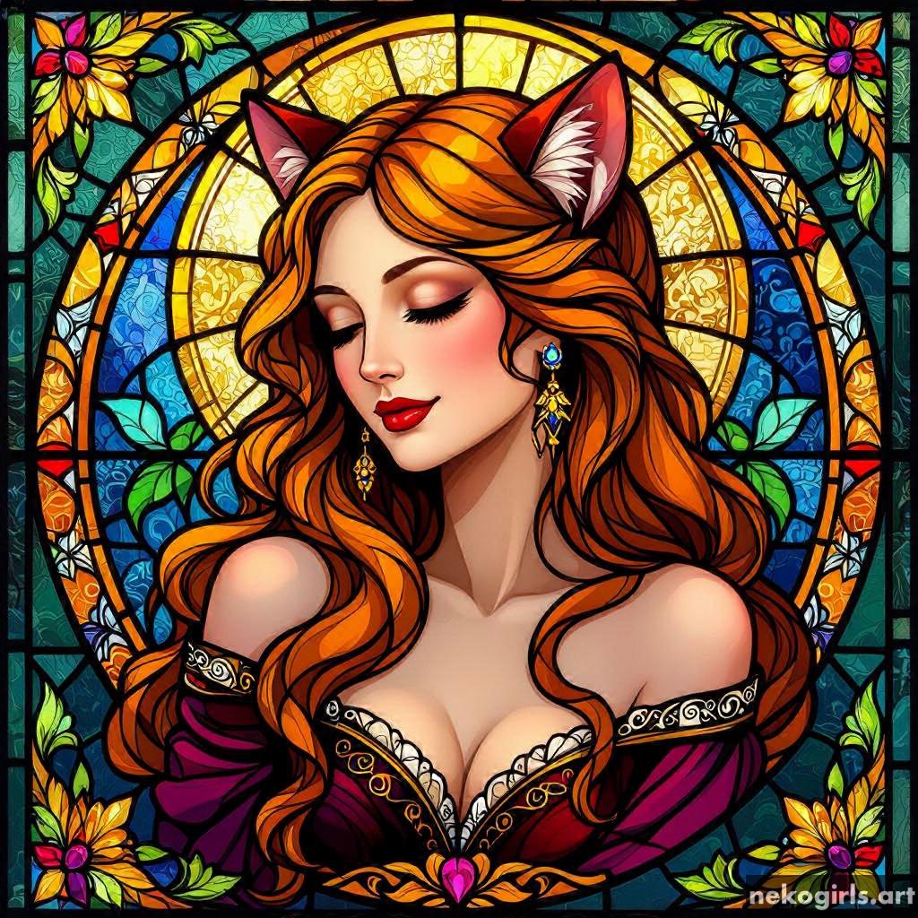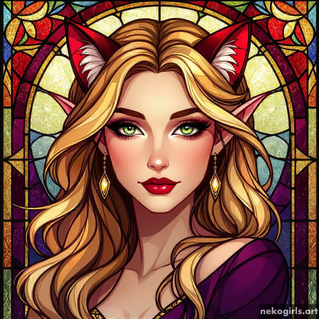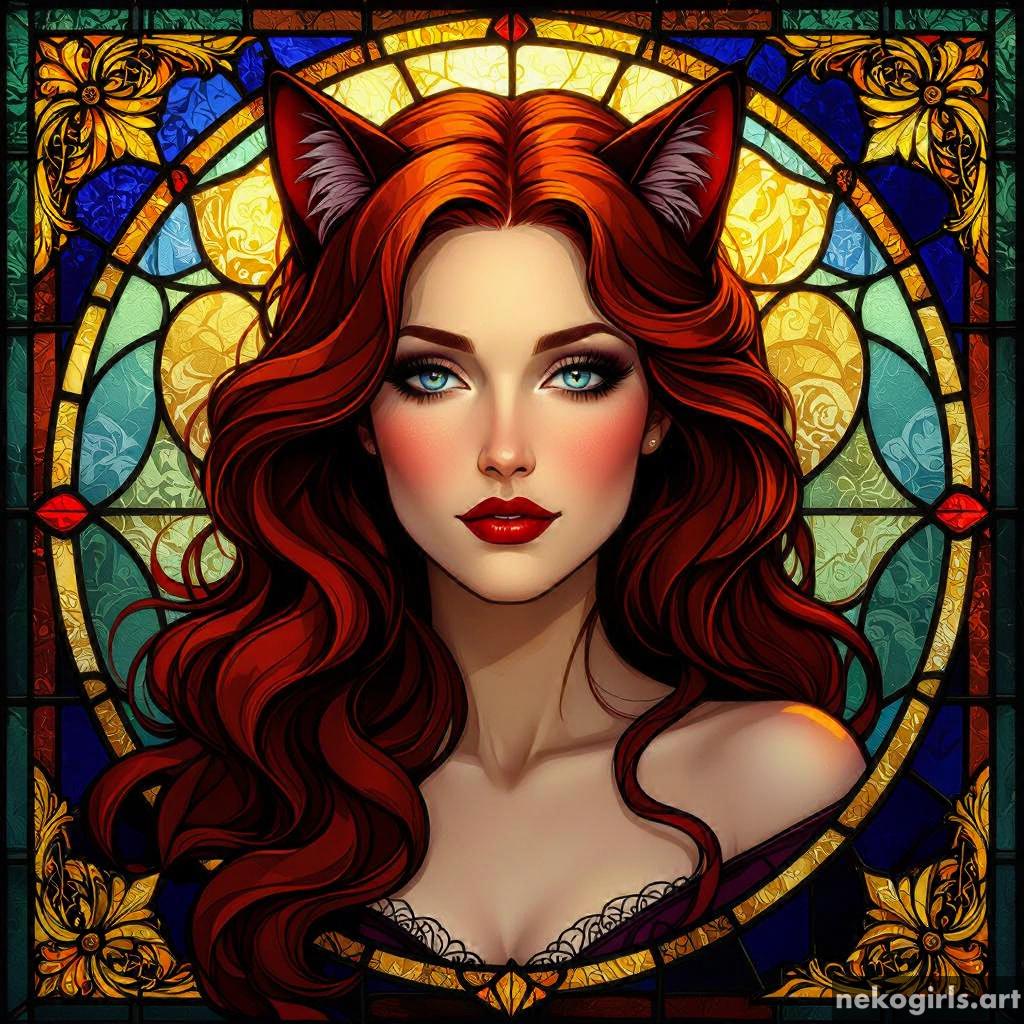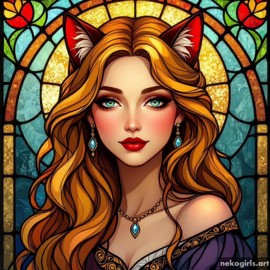 Stained glass cat girl