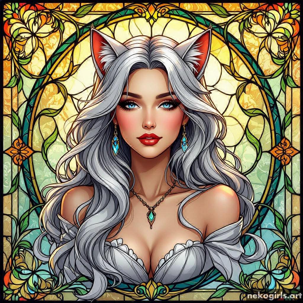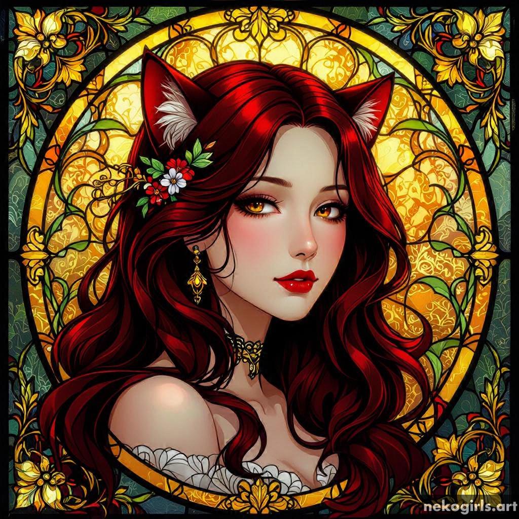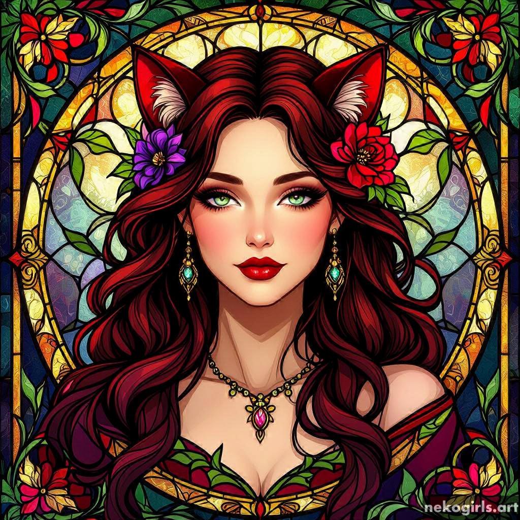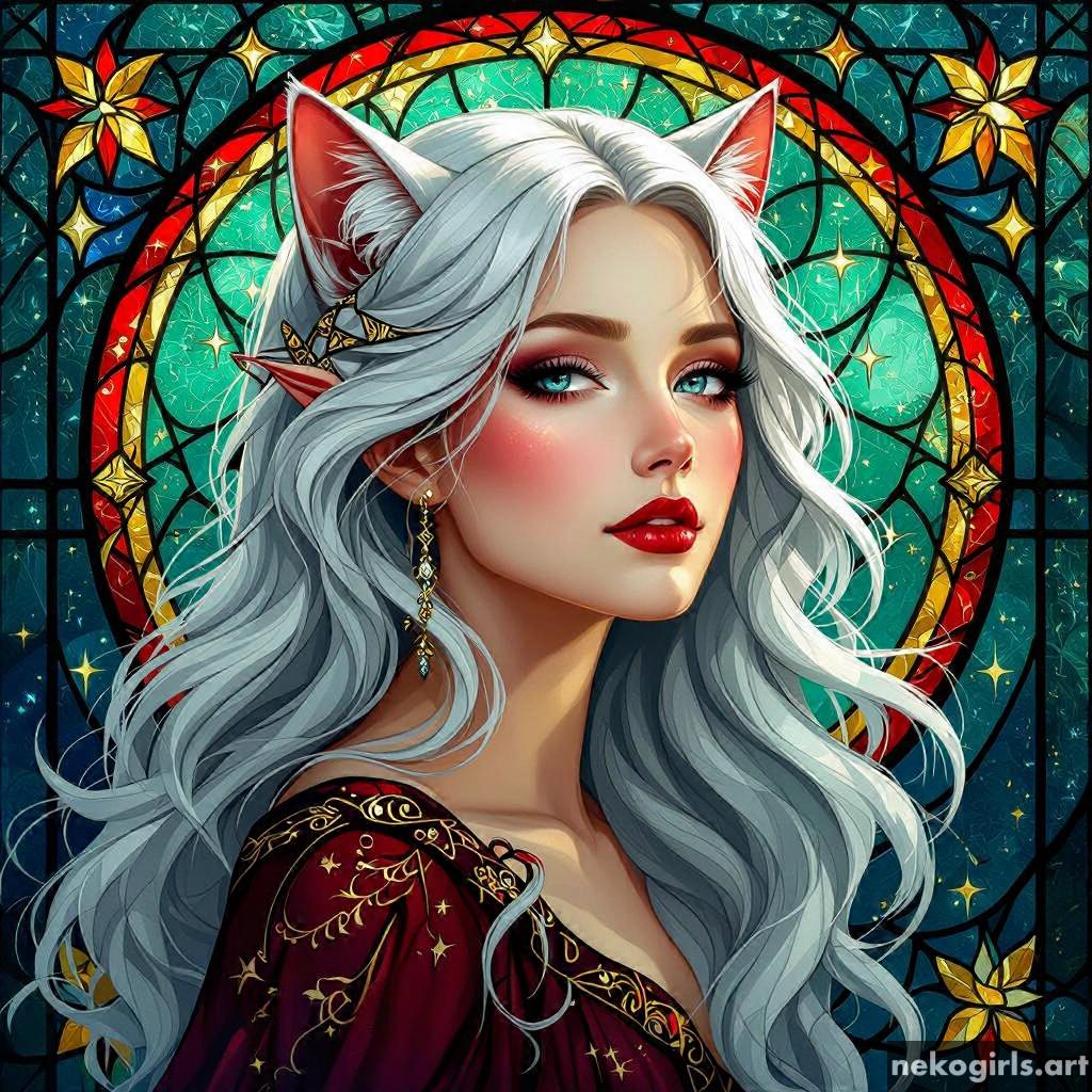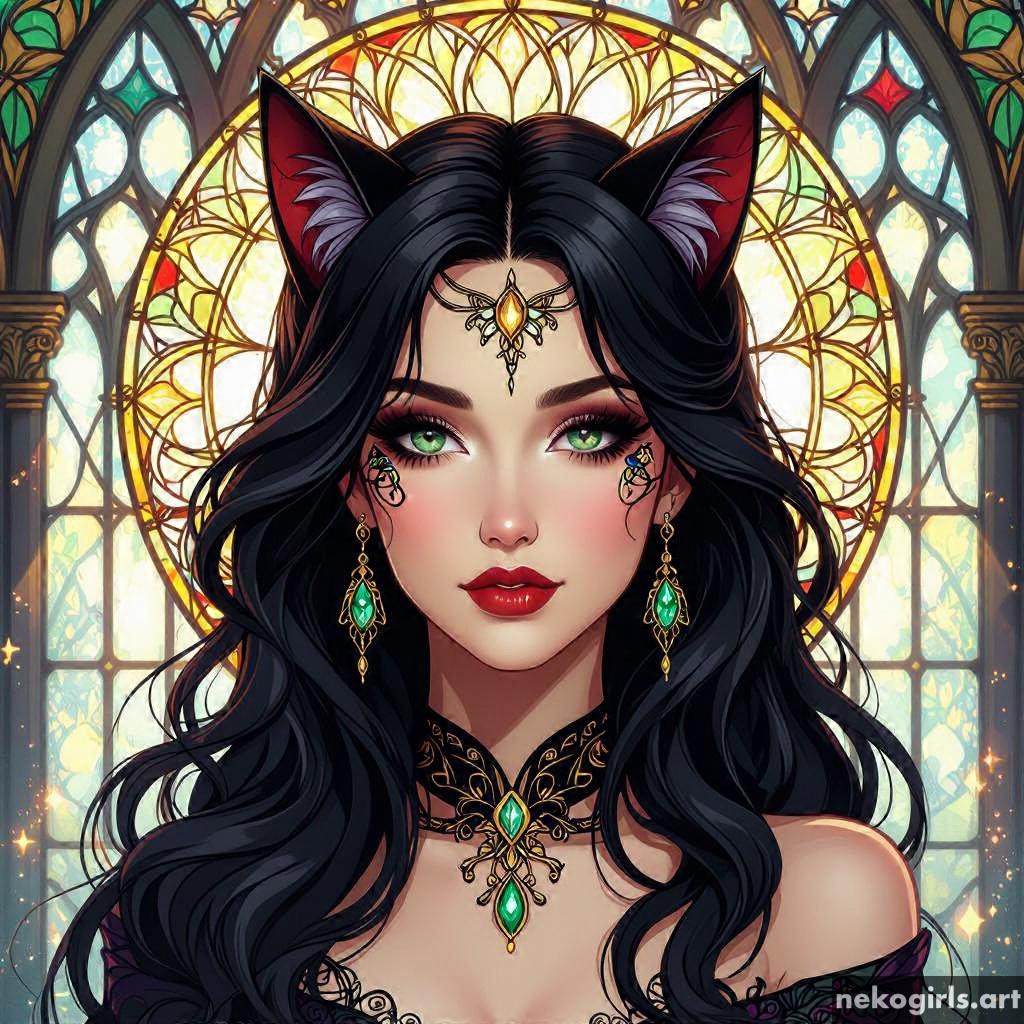 Stained glass cat girl