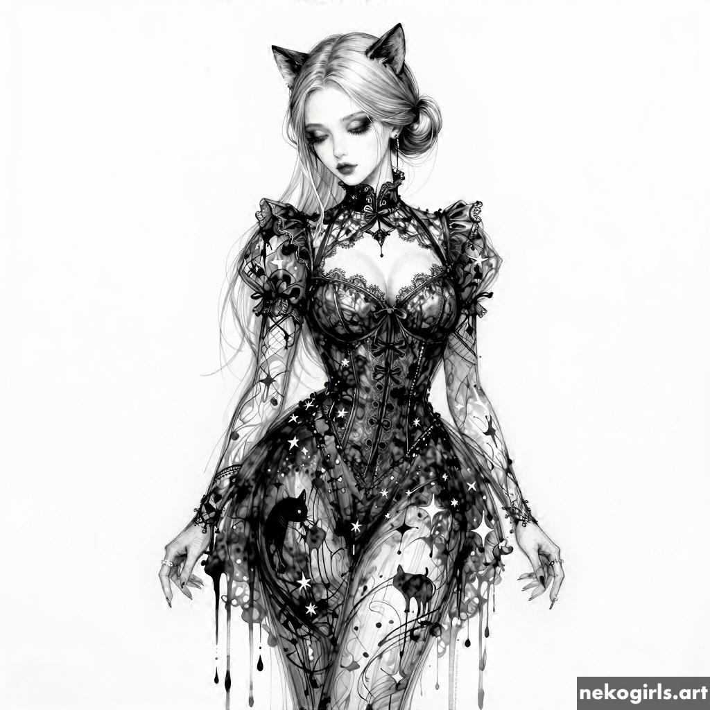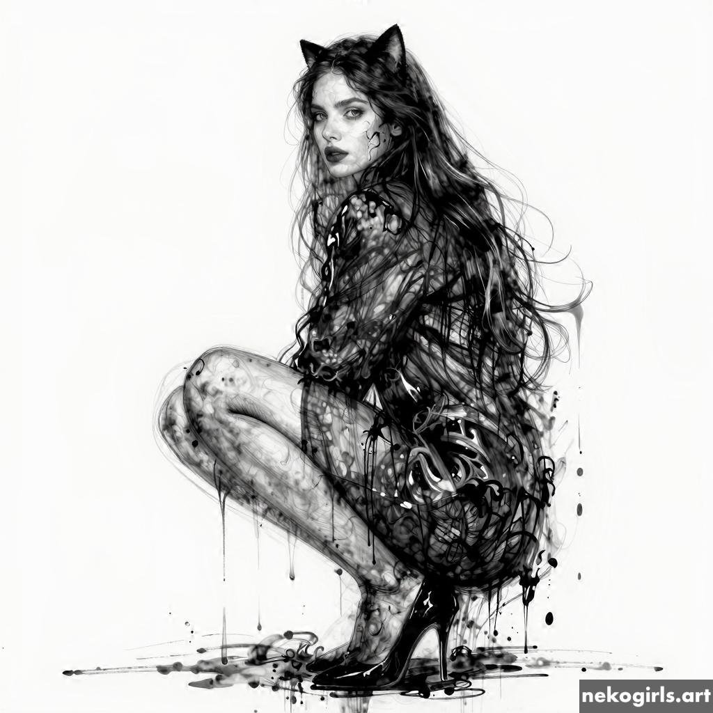 Ink dripping neko drawings
