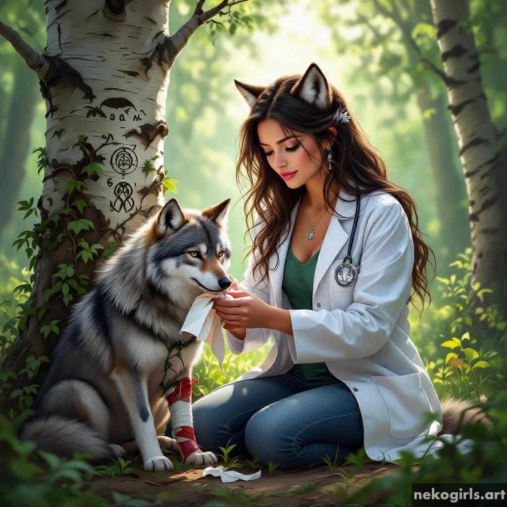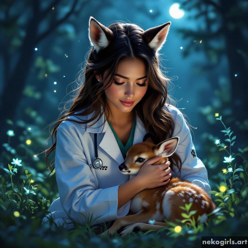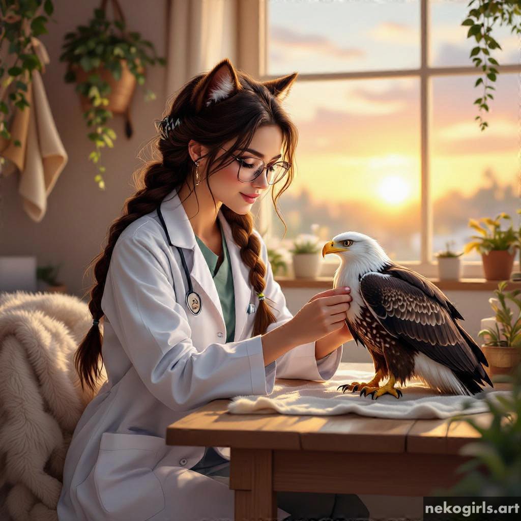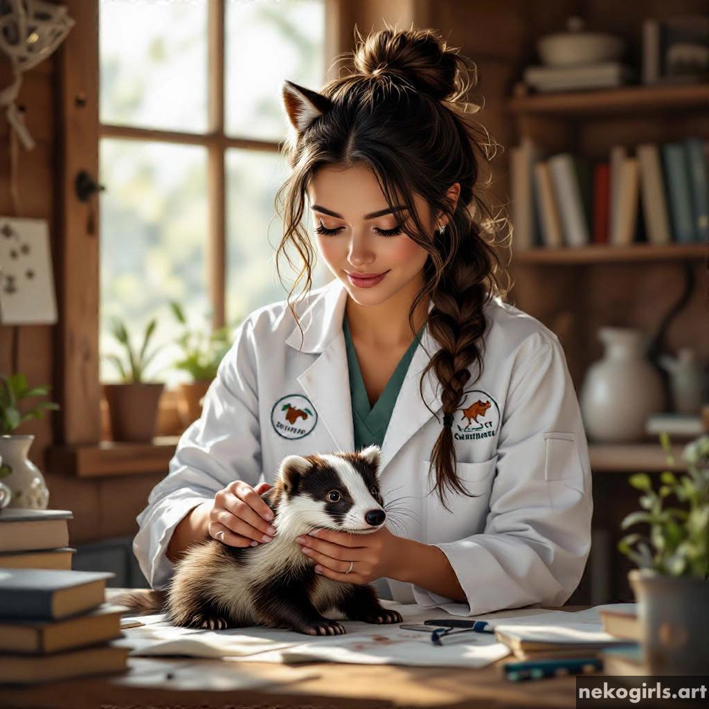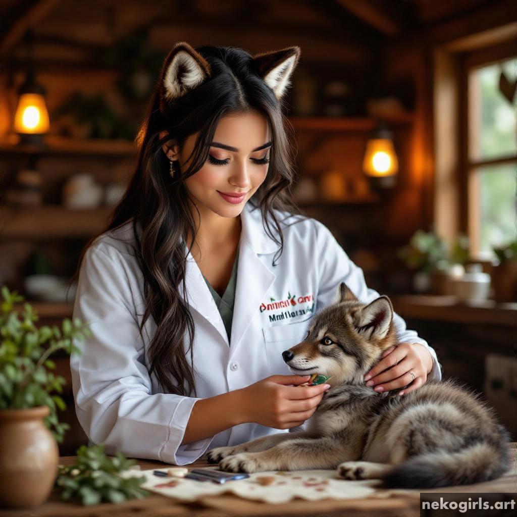 Cat girl veterinarian