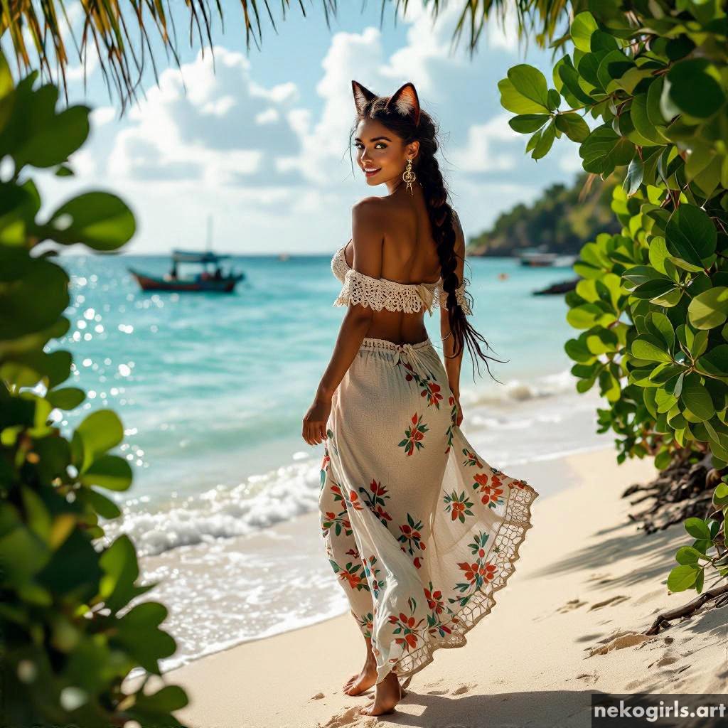 A Cat girl on a tropical beach.